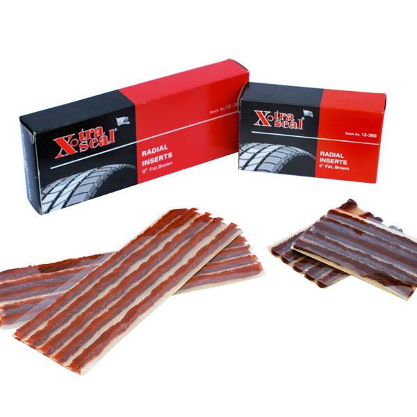 Universal String-Type Inserts are an excellent emergency repair when a full service repair facility is unavailable. Made of a butyl rubber, these inserts are very strong, allowing easy insertion through steel belted radials. Perfect for repairing lawn tractor, golf cart, ATV, and other off-road tyres. Temporary repairs sealing by compression only. For use in radial and bias ply tyres.