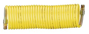 Extends and retracts like a telephone cord. Retracts to 4 percent of working length - eliminates drag and expensive coiling mechanisms. Lighter and more versatile than conventional rubber hose. Abrasion and weather resistant. Operates efficiently at temperatures ranging from -40 deg F to 200 deg F. No oil absorption. Working length 95 percent. Working pressure to 175 psi.