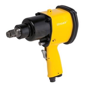 The Unoair I65 3/4dr Impact Gun is an economical shop tool. 800 ft/lb heavy duty pin clutch mechanism. 4800 rpm free speed. 4.5kg weight. Consumes 7 cfm at 90 psi. Can be run on 10mm hose with ΒΌ inch fittings.