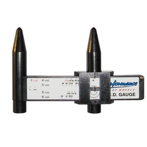 A handy tool for measuring 4, 5 and 6 stud patterns from 98mm x 4 to 5.50” x 6 PCD.