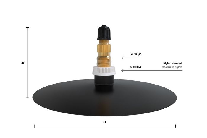 Replacement repair valve for vulcanizing to inner tube. Standard size base 82mm