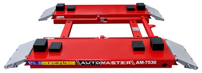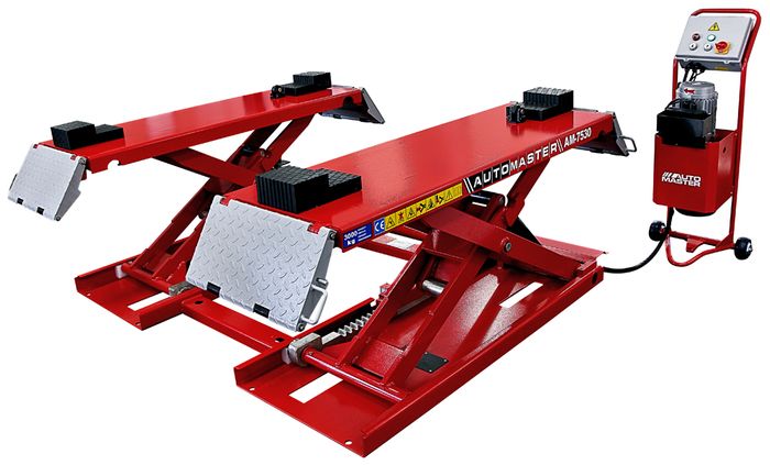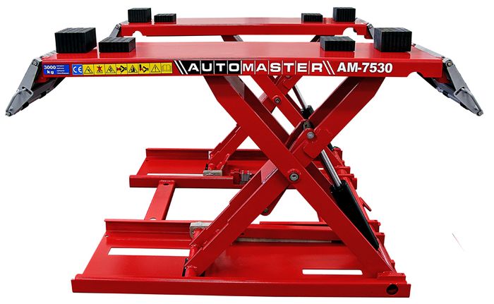 Item not available for on-line purchasing. Please contact Automaster.co.nz for a quote 0800 214 604 , info@automaster.co.nz The Automaster AM-7530 Mid Rise lift is a free standing portable scissor lift. The perfect lift for wheel & tyre, brake and suspension service specialists. Supplied standard with one set (4) 80mm and one set 40mm rubber lifting blocks, Air regulator/moisture trap & oiler, standard single phase plug, and oil hose covers. Capacity 3000kg Min. height 110mm Max. height 1000mm Power 230v / 1ph Lifting time 45 sec Weight 400Kg Platform Length 1460mm/1990 Platform width 460mm Lowing time 35 sec Dimensions 1920*1780*110mm