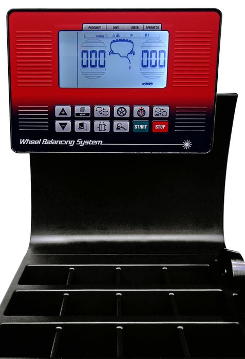 FSP (Fast Selection Program) function and new integrated LaserBlade pointer: the FSP function automatically activates the balancing program avoiding selection via the keypad, while the LaserBlade pointer (inside the measuring arm) guides the operator in choosing the level within the alloy rim without any errors and with extremely good visibility.