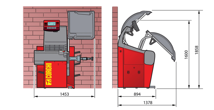 At the end of the spin the wheel is braked and automatically brought to the balancing position. The integrated LED light illuminates the work area to facilitate rim cleaning and application of the counterweights