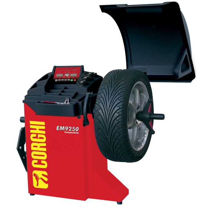 EM 9250 PREMIUM: Version with manual wheel clamping system with automatic input of wheel diameter, width and distance.