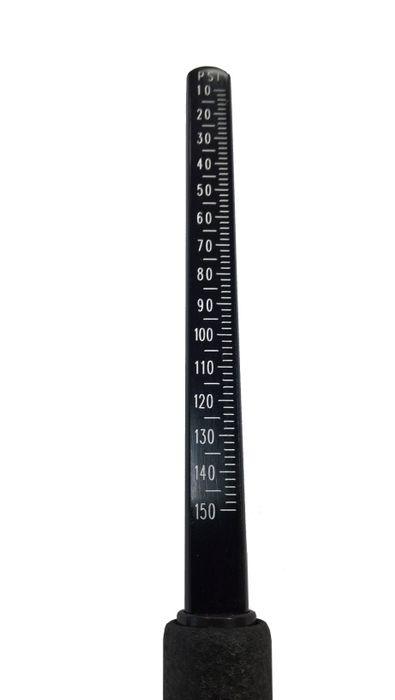 Extended tapered end on the straight end for easier gauging 10-150 PSI in 2 PSI increments, Black easy to read graduated bar with textured wide barrel for easy grip. Scale also in kPA