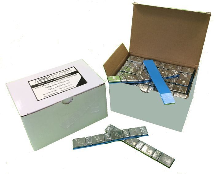 Steel based "Ecobalance" adhesive weight. 100 strips of 5/10gm zinc plated segments packed in a cardboard box. Made with blue backed adhesive tape with a convenient pull off tab. Great value, no waste, proven in NZ conditions. Economical and eco-friendly.