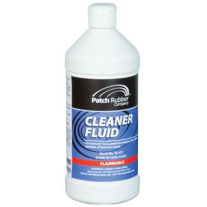 Patch Rubber cleaner fluid is not just a pre buff liquid. Use it to clean contaminants after buffing and before cement application. As it contains no tri-chlor or other carcinogens it is one of the safest products to use in repair work. Unlike other products leaves no residue in the repair area. fast cleaning action maximises patch adhesion.