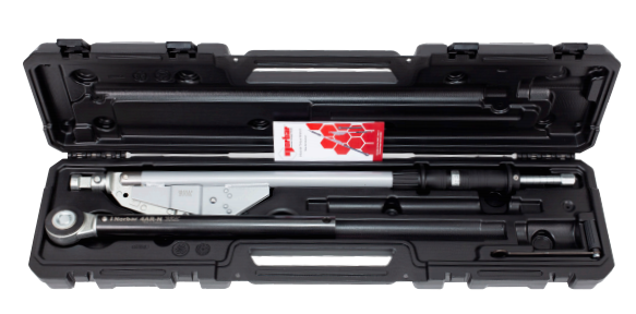 The heavy road fleet industry and other heavy duty operators love the ‘Industrial’ wrench for its robustness and clear torque signal. This new generation retains these qualities but improves upon the original’s scale for more accurate setting and can be split into two parts for easy and economic storage and shipping. Novel features of the split design and handle are protected by design registrations in the EU and applications for design registrations in the US and Canada. A unique profiled cam and reaction plate gives an unmistakable torque signal whilst the large break angle greatly reduces the possibility of over torquing. PRODUCT OVERVIEW • Case dimensions for each tool are 970 mm x 260 mm x 95 mm (length x width x height). • Can be split and packed in two parts for a smaller, easier to transport tool. . Comes with a 3/4" drive adapter • The clear torque signal that the break-back provides means that the wrench can be safely used in noisy environments where the ‘click’ signal of other wrenches may be missed. • These robustly constructed tools are accurate to ±4% even in arduous conditions and have further features which include: • Push-through ratchet for torqueing in two directions • Unique profiled cam and reaction plate - gives much clearer torque signal and the large break angle greatly reduces the possibility of over torqueing • Adjusting spanner so additional torque setting tool is not required • Easy to read scale protected from dust, dirt and spray • Designed for cost effective service • New handle - more comfortable and guides operator’s hand to correct position