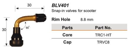 - 8.8mm rim hole 90' rubber snap in t/l valve