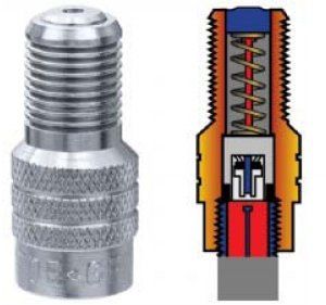 Designed for high pressure truck tyre service. Inflate, deflate or gauge directly thru the V2B saving time during inflation and pressure checks. Automatic inflation systems lock right onto the V2B. Seals like a high pressure cap, yet offers the convenience of an inflate thru extension. The V2B performs like a check valve, the seal becomes tighter in the event of a core failure. Heat resistant grommets provide additional protection for extended high temperature running. Features tough all metal housing, precision fit brass components and durable self sealing O-Ring. This is the original inflate thru valve cap proven in millions of miles of service by the nations largest trucking companies. Purpose: - The V2B is an inflate thru sealing valve cap. - The V2B is used in place of a standard valve cap. - The V2B Saves Time - It does not have to be removed and replaced to check air pressure or to add air. - The V2B is more permanent than a cap. Caps are often left off after checking pressure; the V2B does not have to come off, so it wont be lost. Installation: - Inspect the valve stem to make sure it is not damaged and does not have a protruding valve core. Core pin must not be above top of valve mouth. - Install the V2B onto the valve, finger tight. Do not use pliers. - The V2B is a cap. It does not require an additional cap. - Installation torque 11/2 - 3 inch pounds Usage: - Gauge and inflate directly through the V2B. Do not remove it. - The V2B is grooved at the top to accommodate various lock on chucks and automatic inflation devices. - Effective length 3/4 inch.