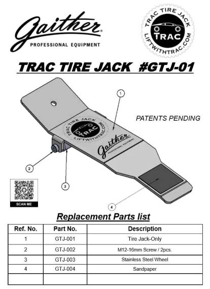 - TRAC tyre jack Gaither Tools