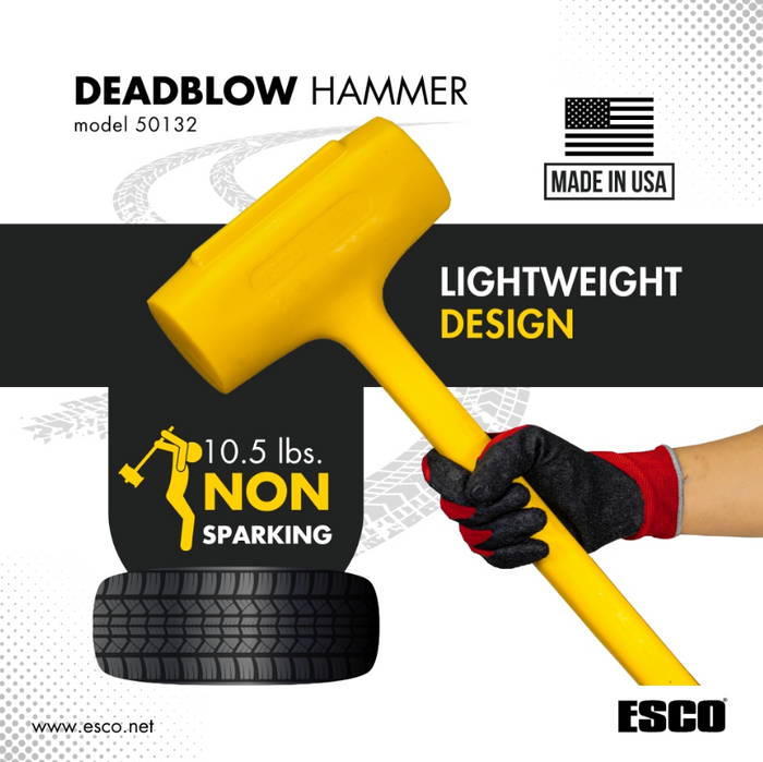Built for the toughest jobs, the ESCO Dead-Blow Sledge Hammer Model 50132 is lightweight, heavy-duty, and ready for action. With a textured knurled grip for secure handling, it’s designed to handle multiple applications, including non-sparking and no-marring tasks. Made in the USA, this hammer delivers the durability and performance professionals demand.
