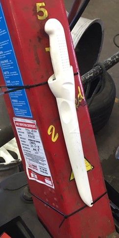 All Victory Knives are manufactured in New Zealand from imported German High Carbon Stainless Steel. The 15cm stainless steel blade is hollow ground from quality German Stainless Steel which has a hardness of 54-56 HRC. The benefit is a strong, hard and wearing blade with improved edge retention. This Utility Knife comes with the classic Victory handle pattern and finger guard made from tough Polypropylene for added safety which has proven robust and practical. Purchase with the 42508 plastic sheath for mounting to your tyre machine with cable ties.